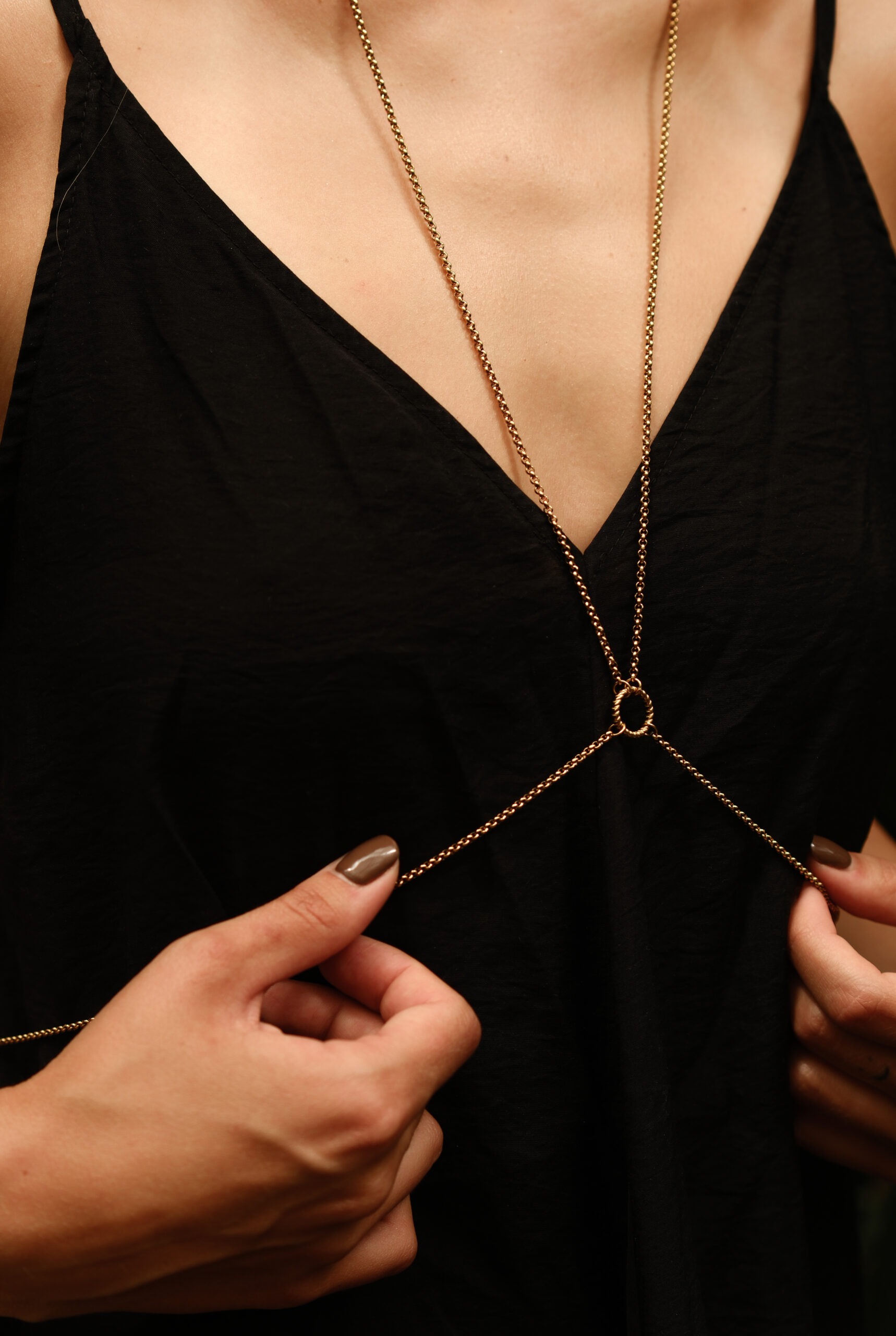 Zvodný šperk, so zlatou retiazkou – zvýrazni krivky a dodá tvojmu looku nádych luxusu.