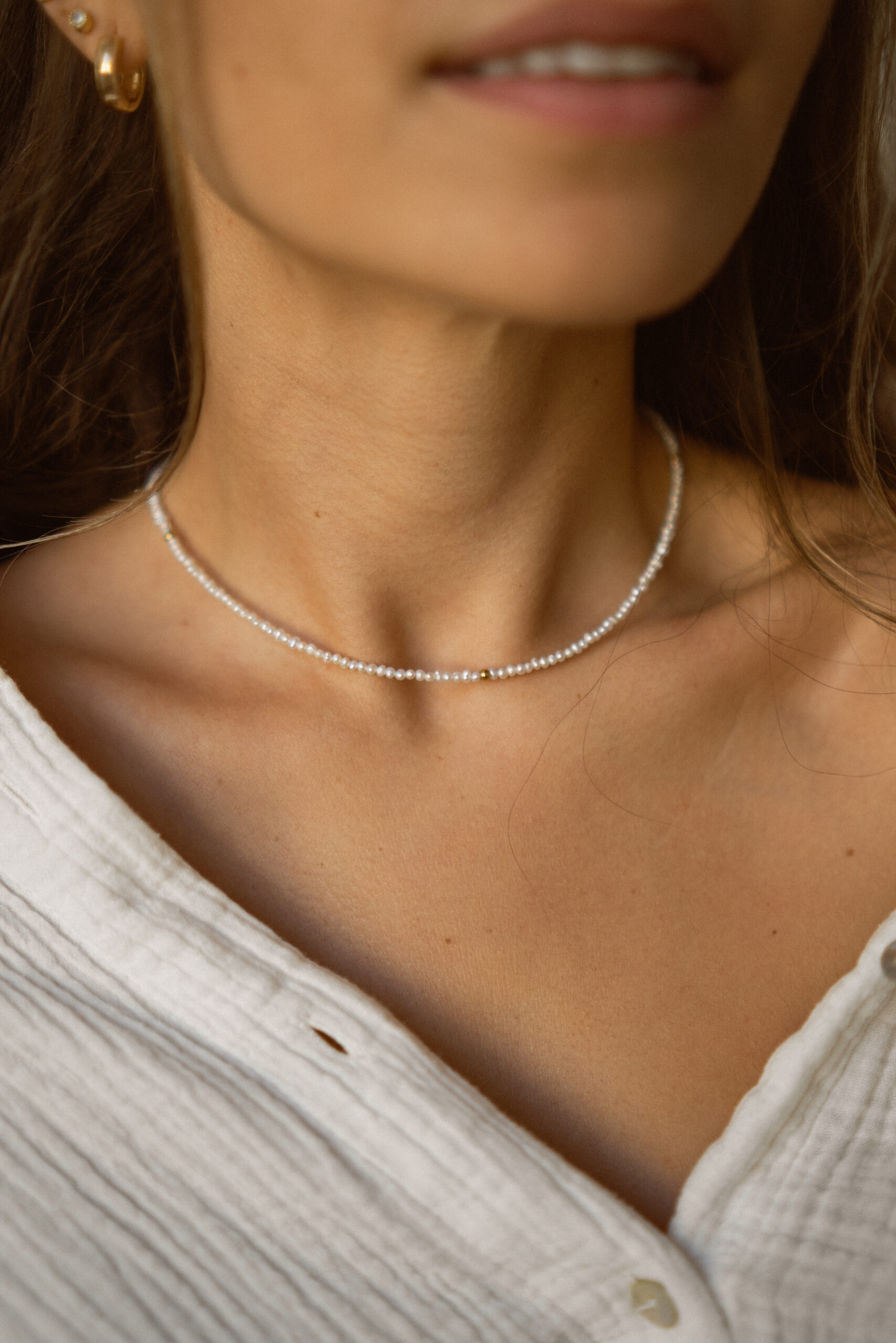 Náhrdelník CHOKER z mini riečnych perál. Dĺžka náhrdelníka je 38cm ( v prípade záujmu inej dĺžky, nám napíšte do poznámky požadovanú dĺžku).