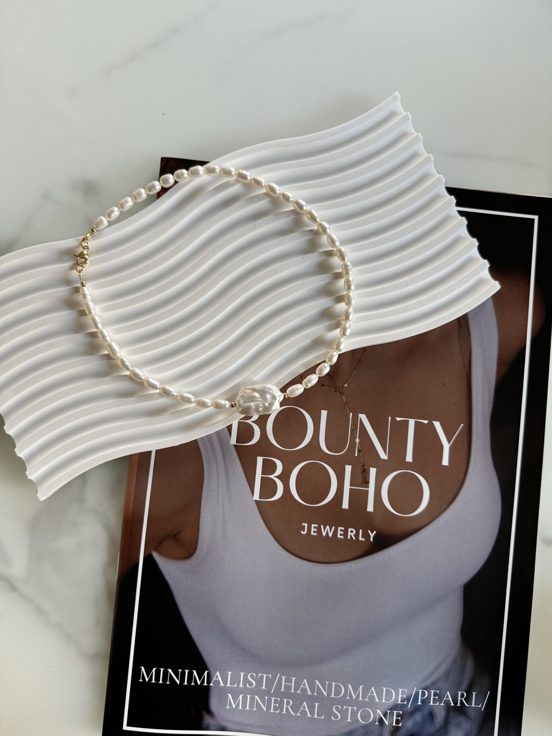Náhrdelník z riečnych perál a maxi barokovou perlou. Štadartná dĺžka náhrdelníka je 38cm.