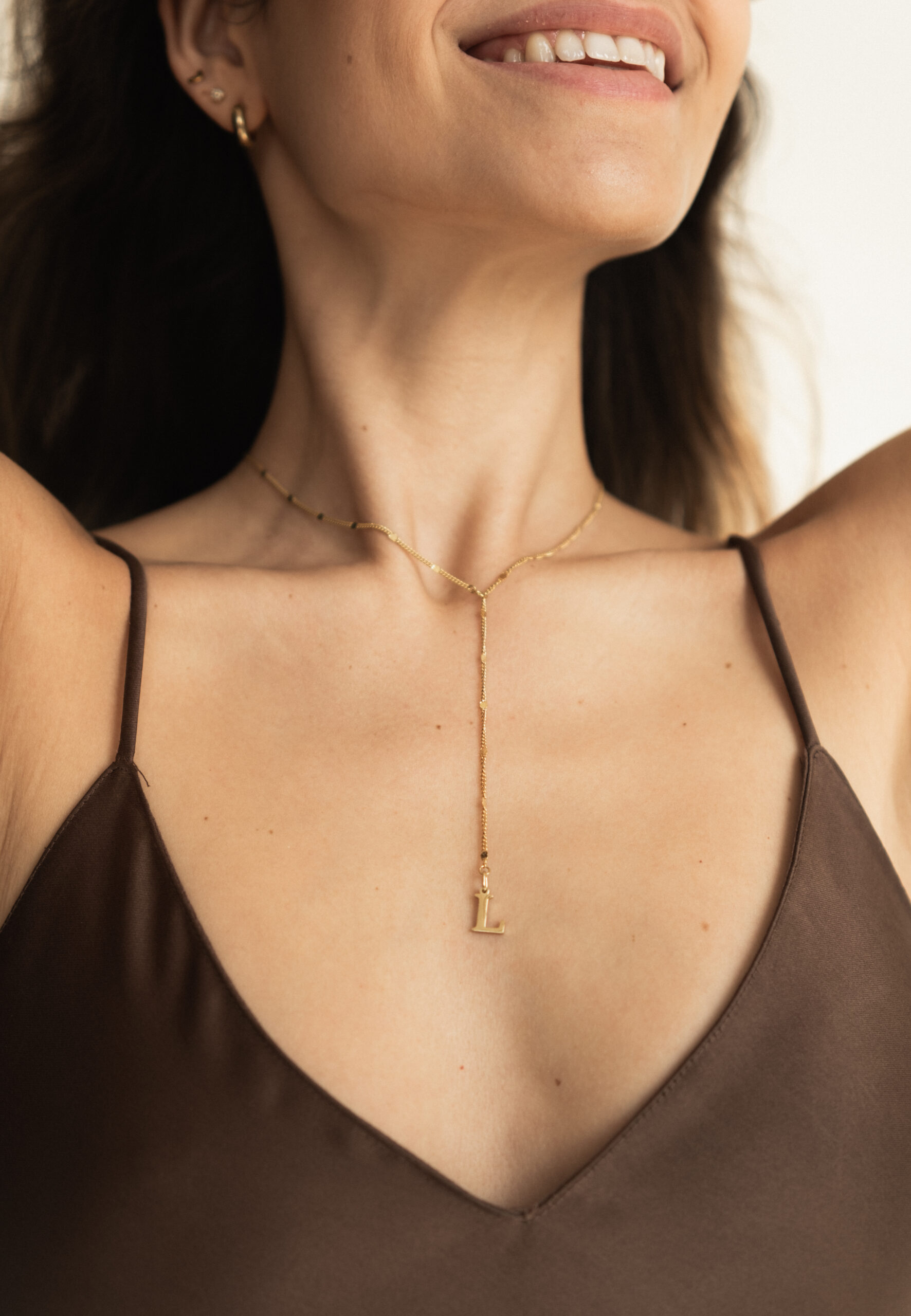 • Najobľúbenejší minimalistický náhrdelník s ľubovoľnou iniciálkou. Retiazka je pohyblivá.