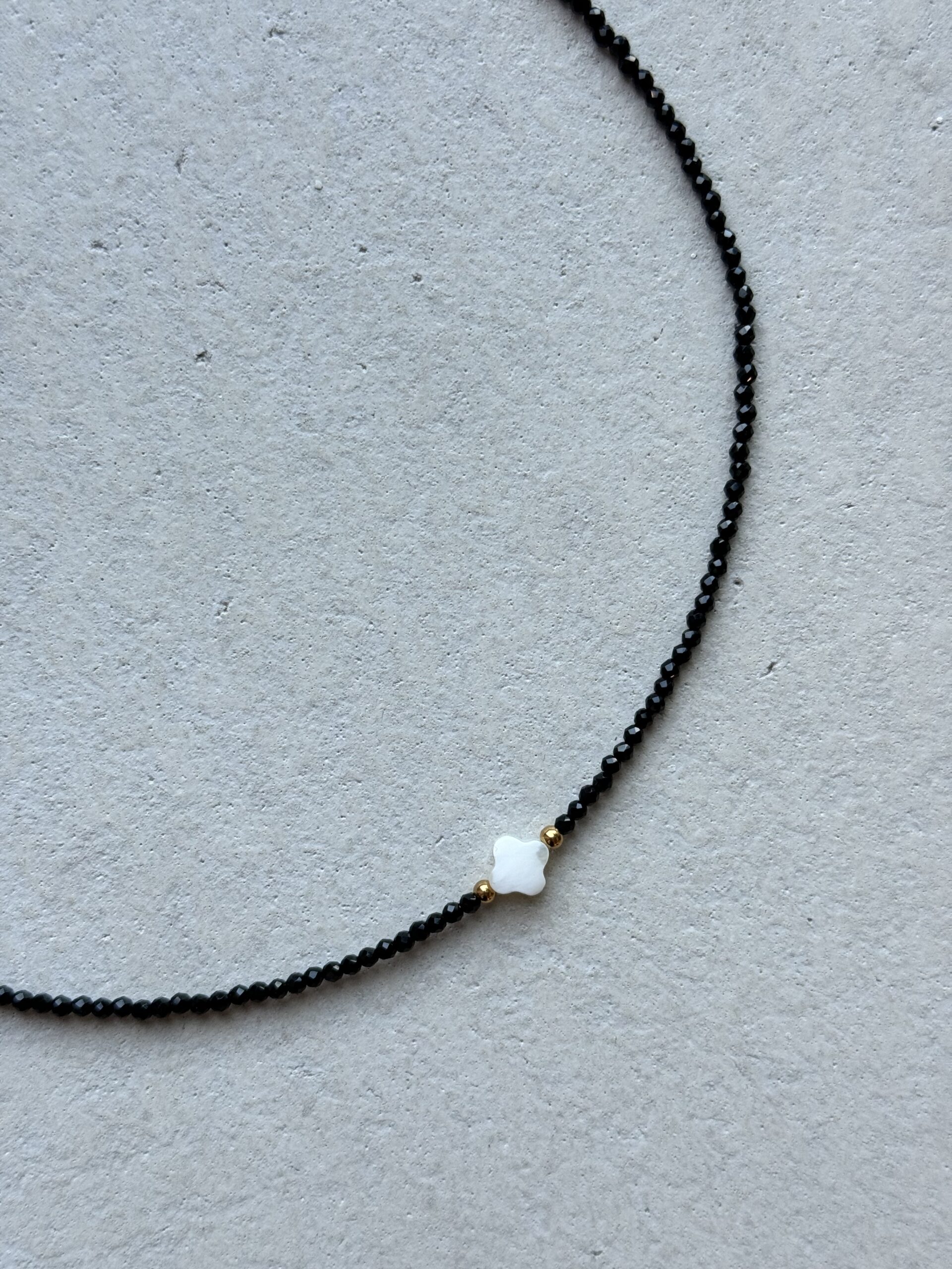 Minimalistický náhrdelník z onyxu a perlete. Dĺžka náhrdelníka je 38cm, v prípade, že si želáte inú dĺžku náhrdelníka napíšte nám to prosím do poznámky.
