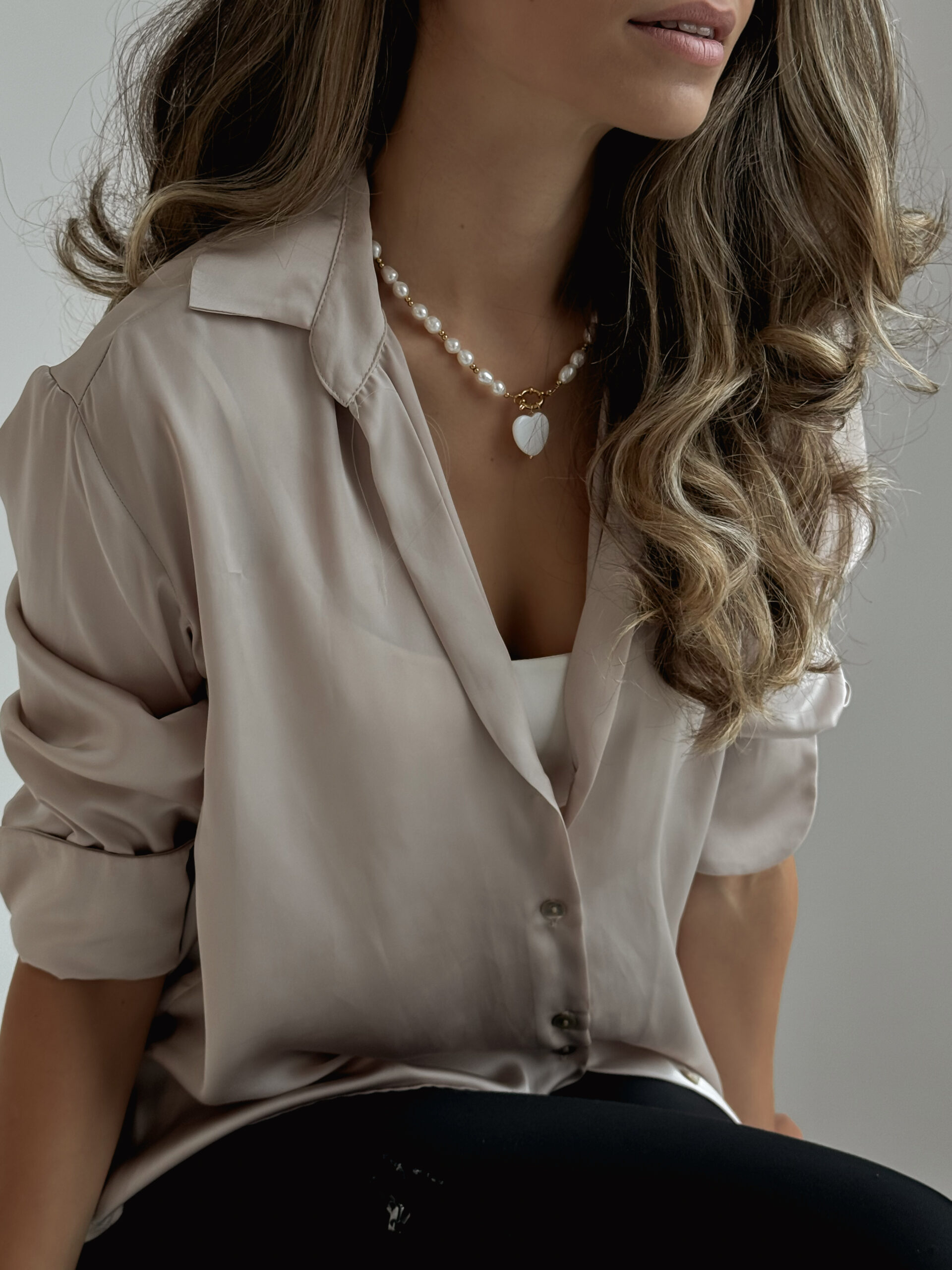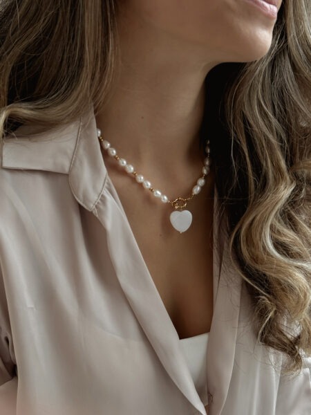 Materiál: riečna perla, chirurgická oceľ, perleť.