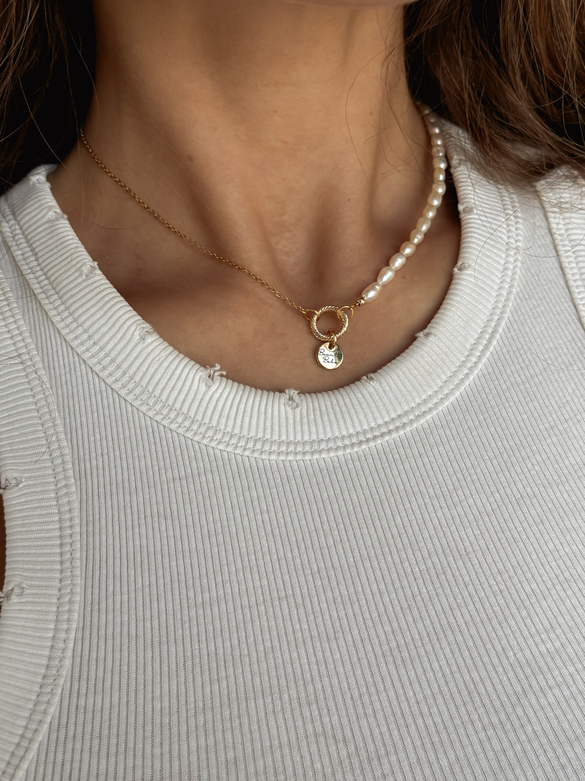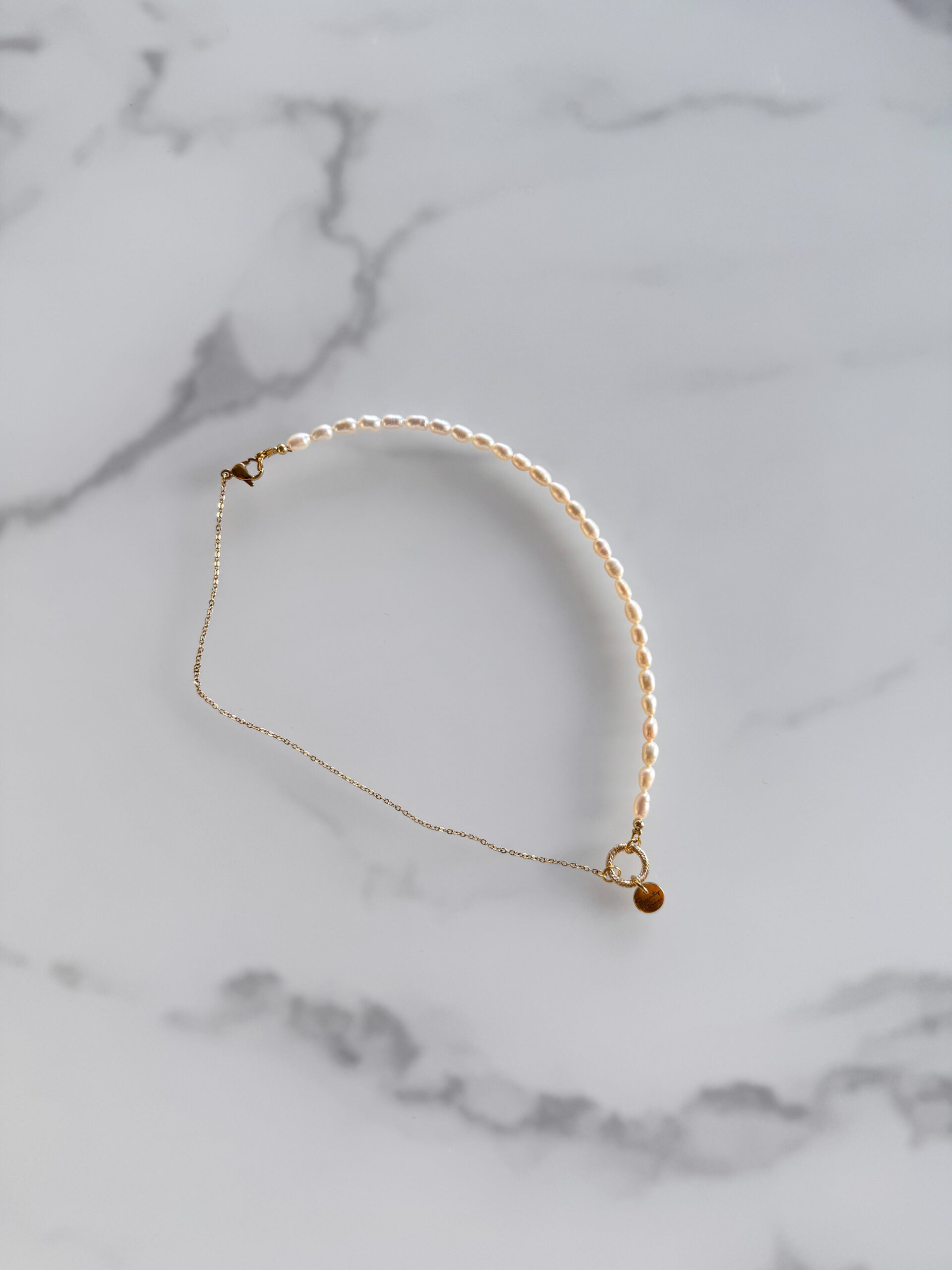 Minimalistický náhrdelník z riečnych perál a chirurgickej ocele. Dĺžka nahrdelnika je 40cm, v prípade, že si želáte inú dĺžku, napíšte nám to prosím do poznámky.