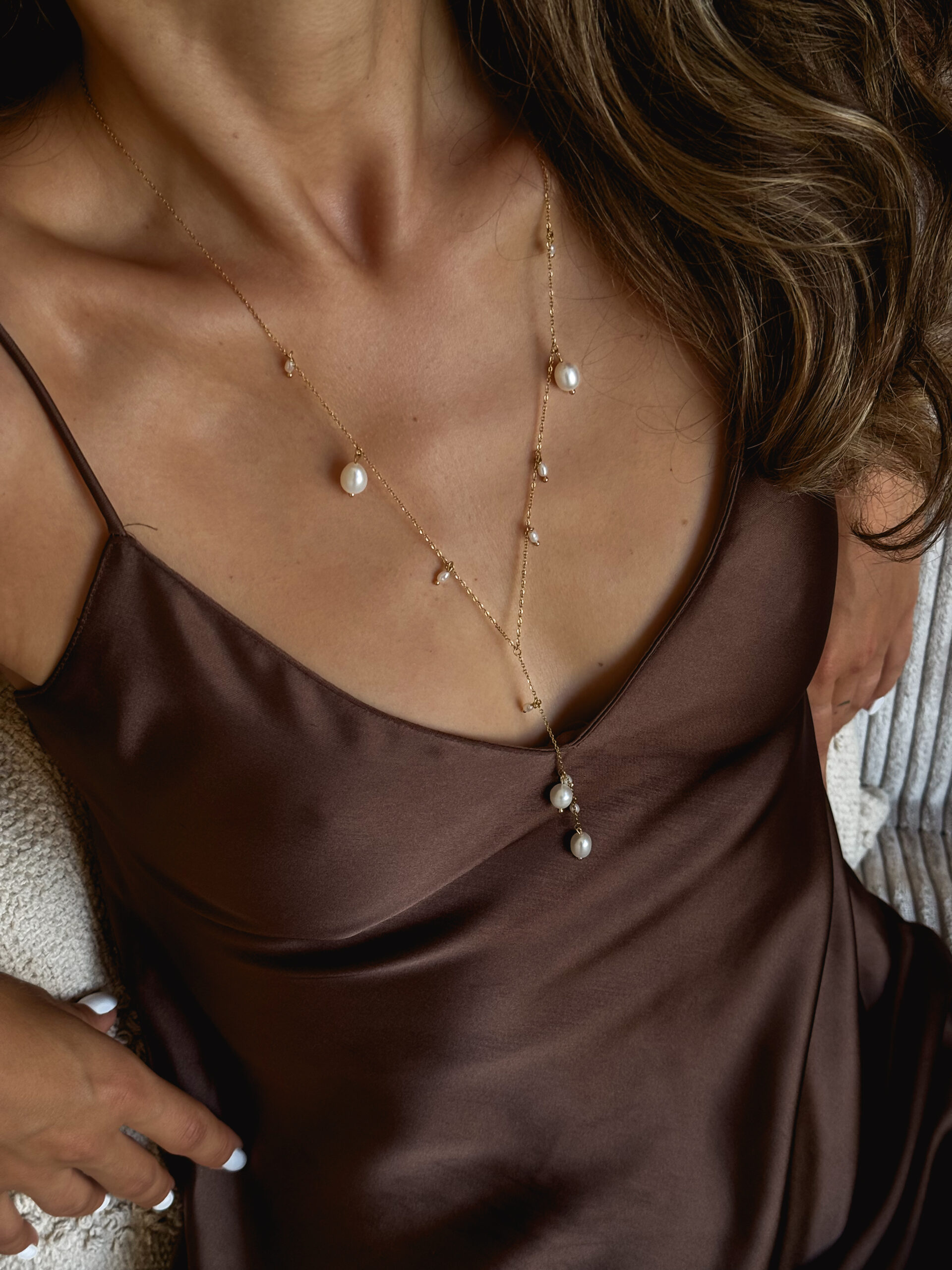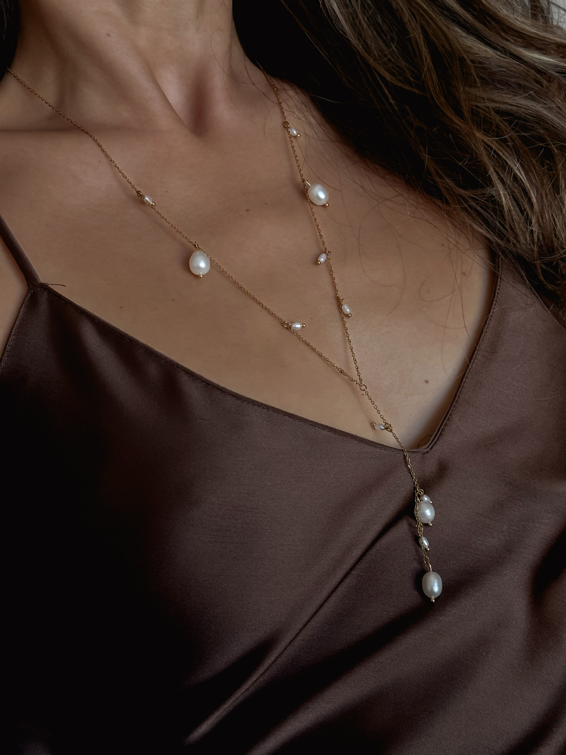 Náhrdelník Ibiza je štýlový a elegantný doplnok, ktorý osvieži každý outfit. Retiazkový dizajn v tvare písmena „Y“ pôsobí jemne a sofistikovane, pričom ho zdobia nádherné riečne perly. Tieto prírodné perly dodávajú šperku jedinečný lesk a luxusný vzhľad. Náhrdelník je ideálny na každodenné nosenie aj špeciálne príležitosti, kde chcete vyniknúť. Perfektne sa hodí k šatám, blúzkam, ale aj jednoduchému tričku. S náhrdelníkom Ibiza budete vždy pôsobiť elegantne a moderne.