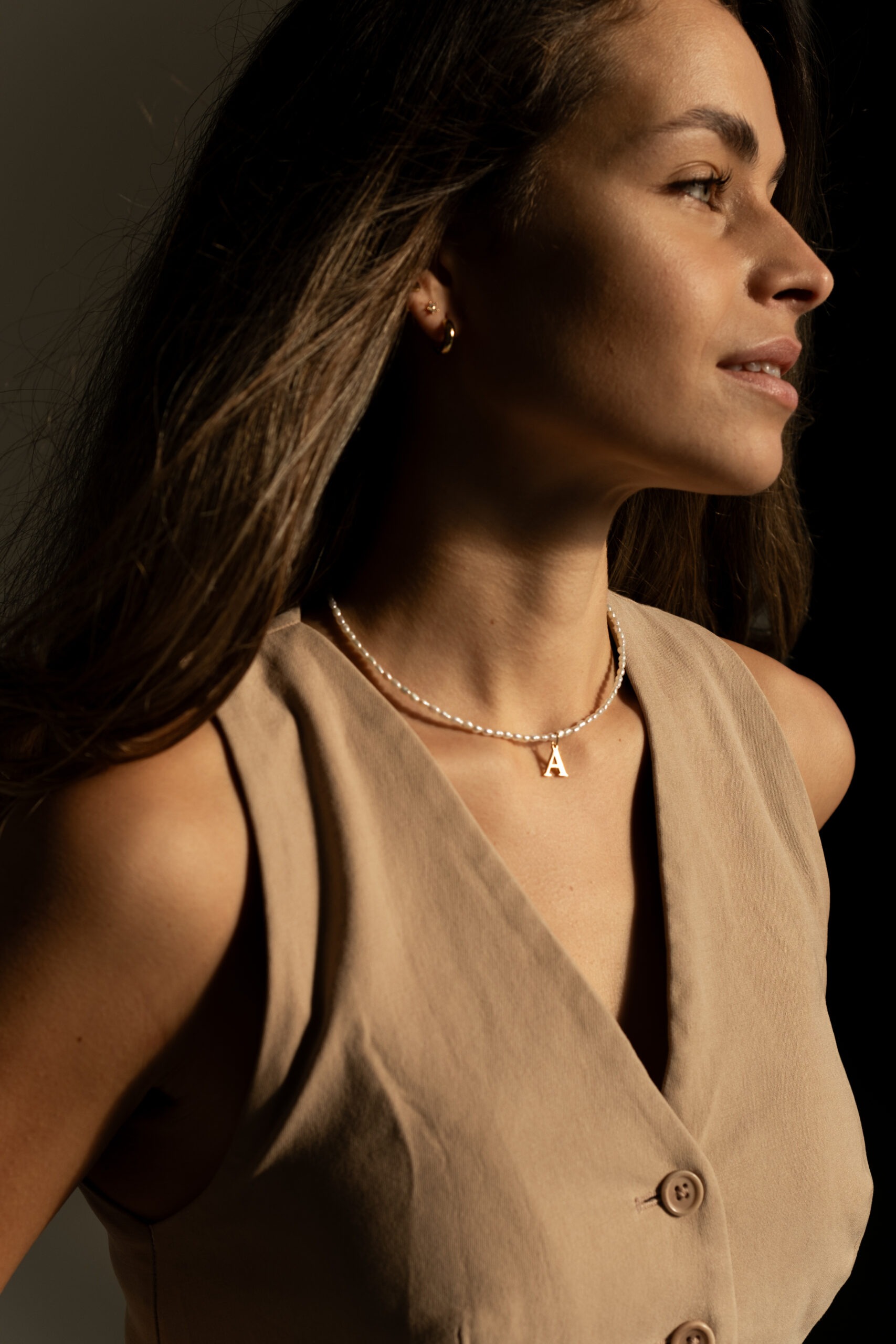 Minimalistický náhrdelník z riečnych perál s ľubovoľnou inciálkou.