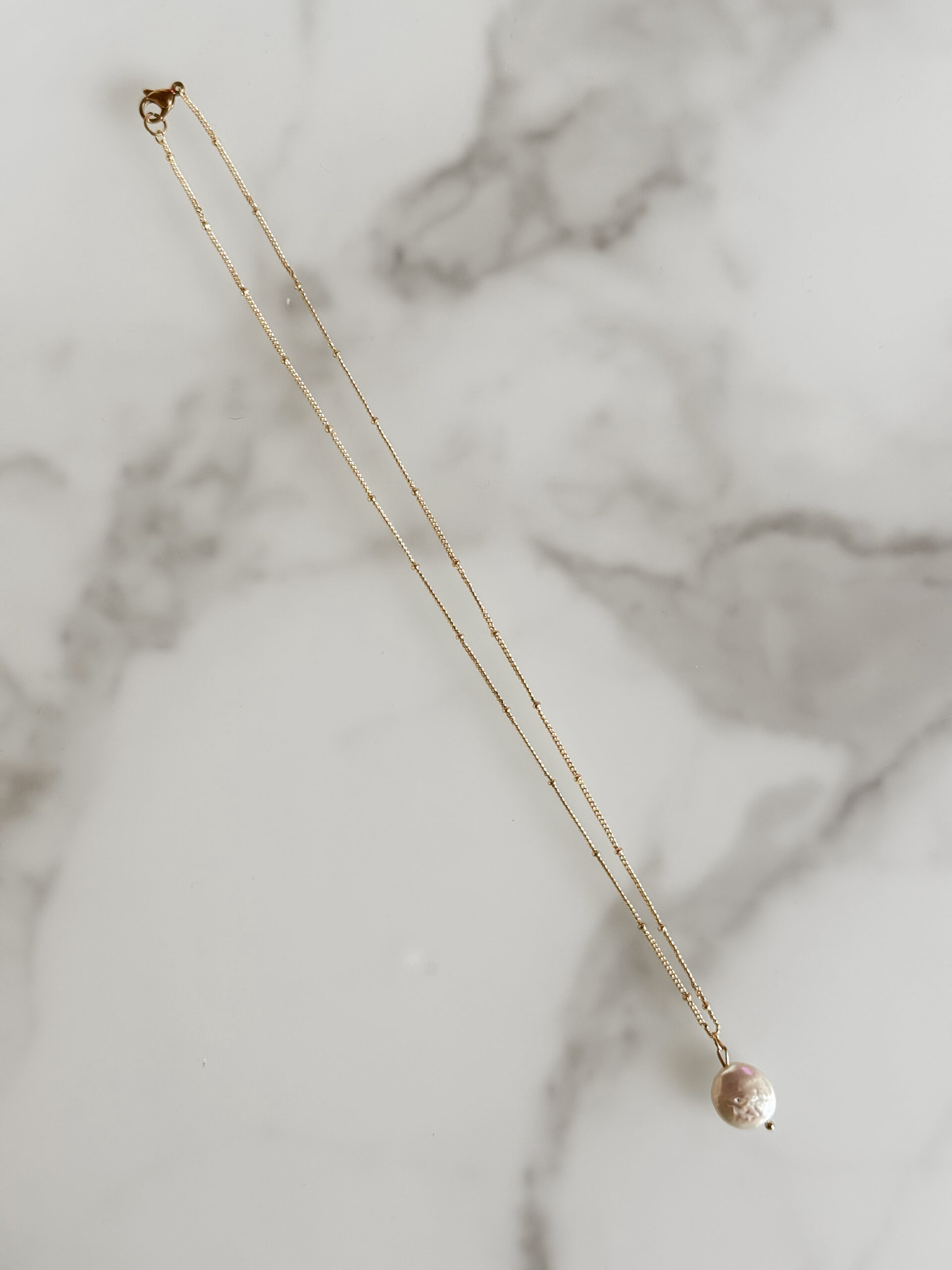 Minimalistický náhrdelník s riečnou perlou. Náhrdelník je skvelý na vrstvenie s chokerom. Dĺžka náhrdelníka je 45cm.
