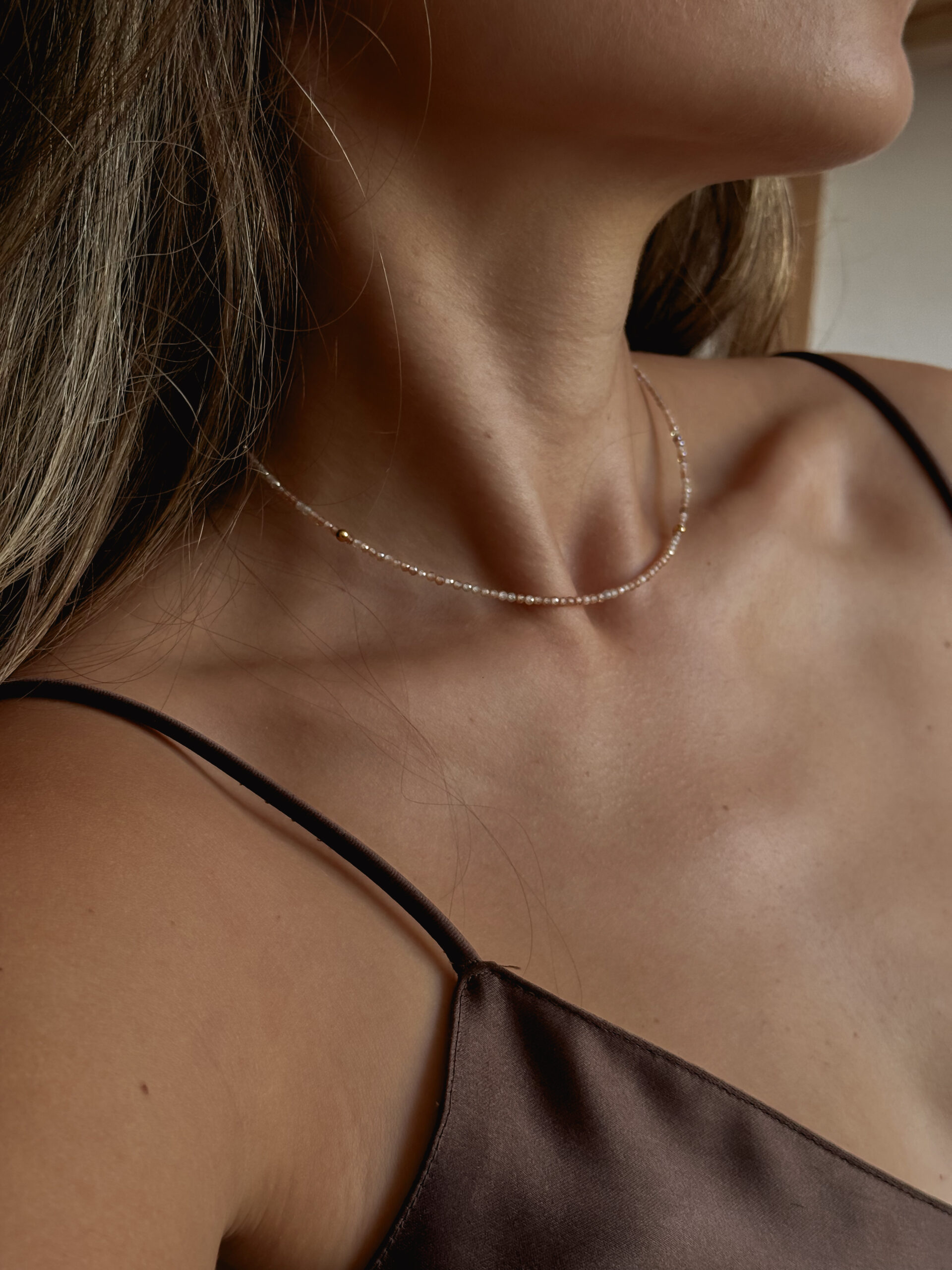 Ten najjemnejší náhrdelník z našej ponuky.Minimalistický náhrdelník zo zirkónov. Dĺžka náhrdelníka je 38cm ( v prípade, že si želáte inú dĺžku náhrdelníka, napíšte nám to prosím do poznámky).