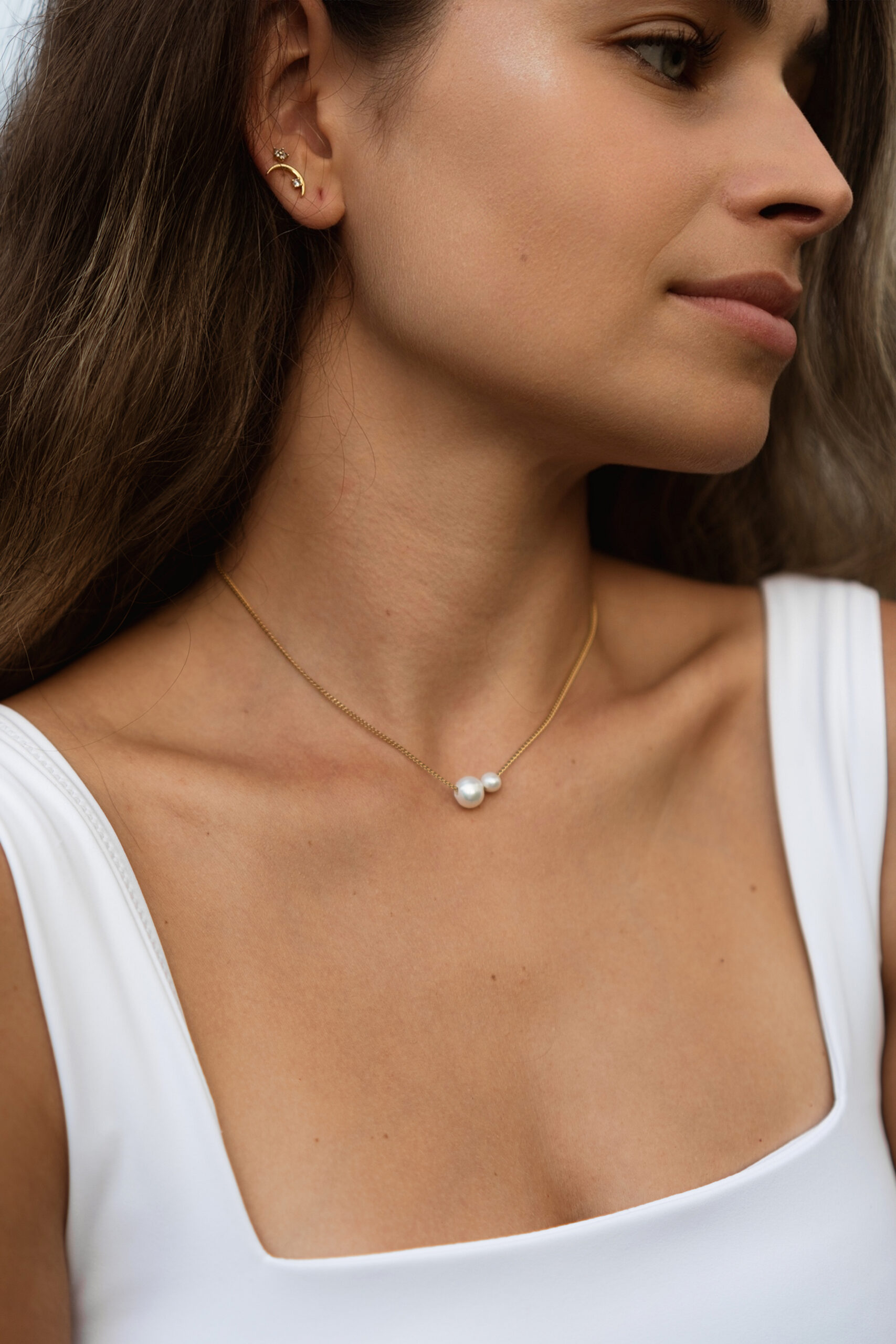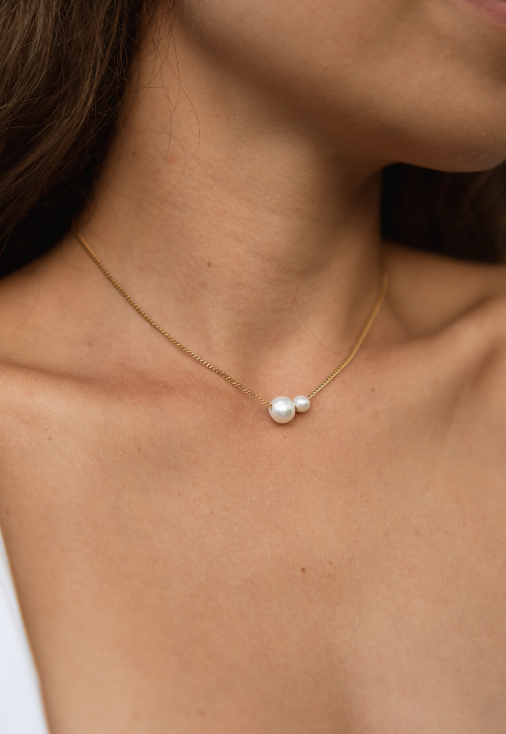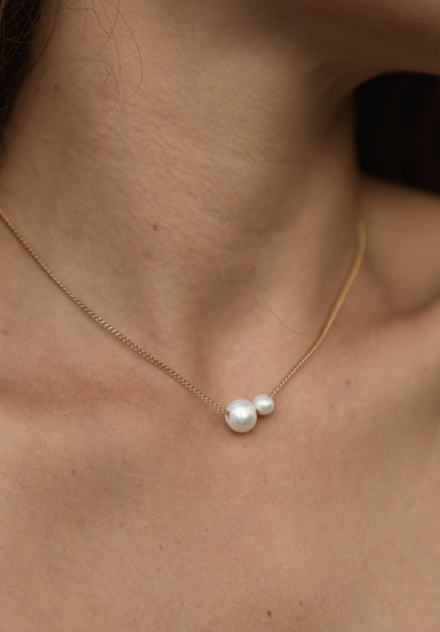 Minimalistický náhrdelník z retiazky z chirurgickej ocele a dvoch riečnych perál.