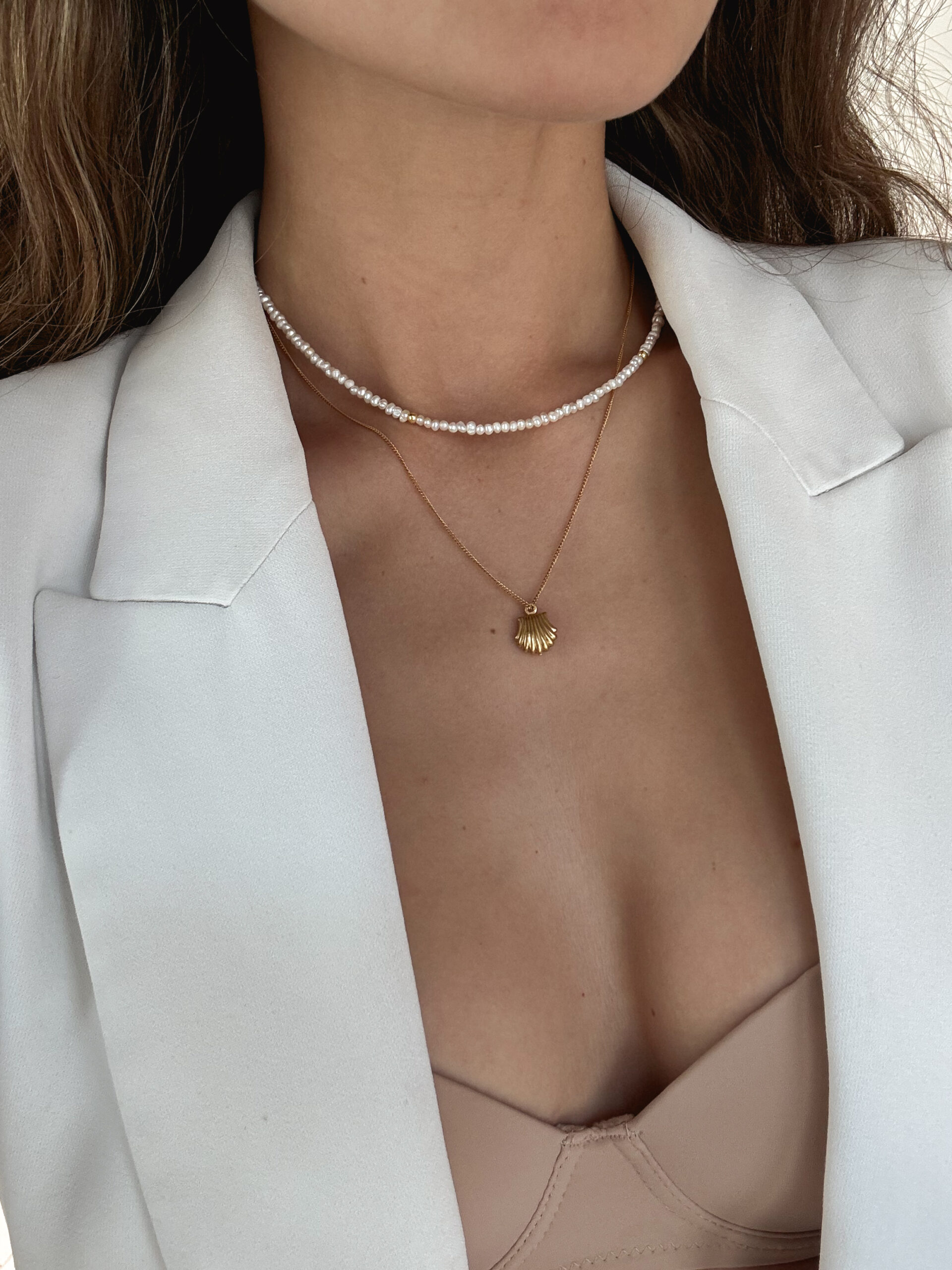 Minimalistický náhrdelník s príveskom mušle. Dĺžka náhrdelníka je 45cm, v prípade, že si želáte inú dĺžku náhrdelníka, napíšte nám to do poznámky.