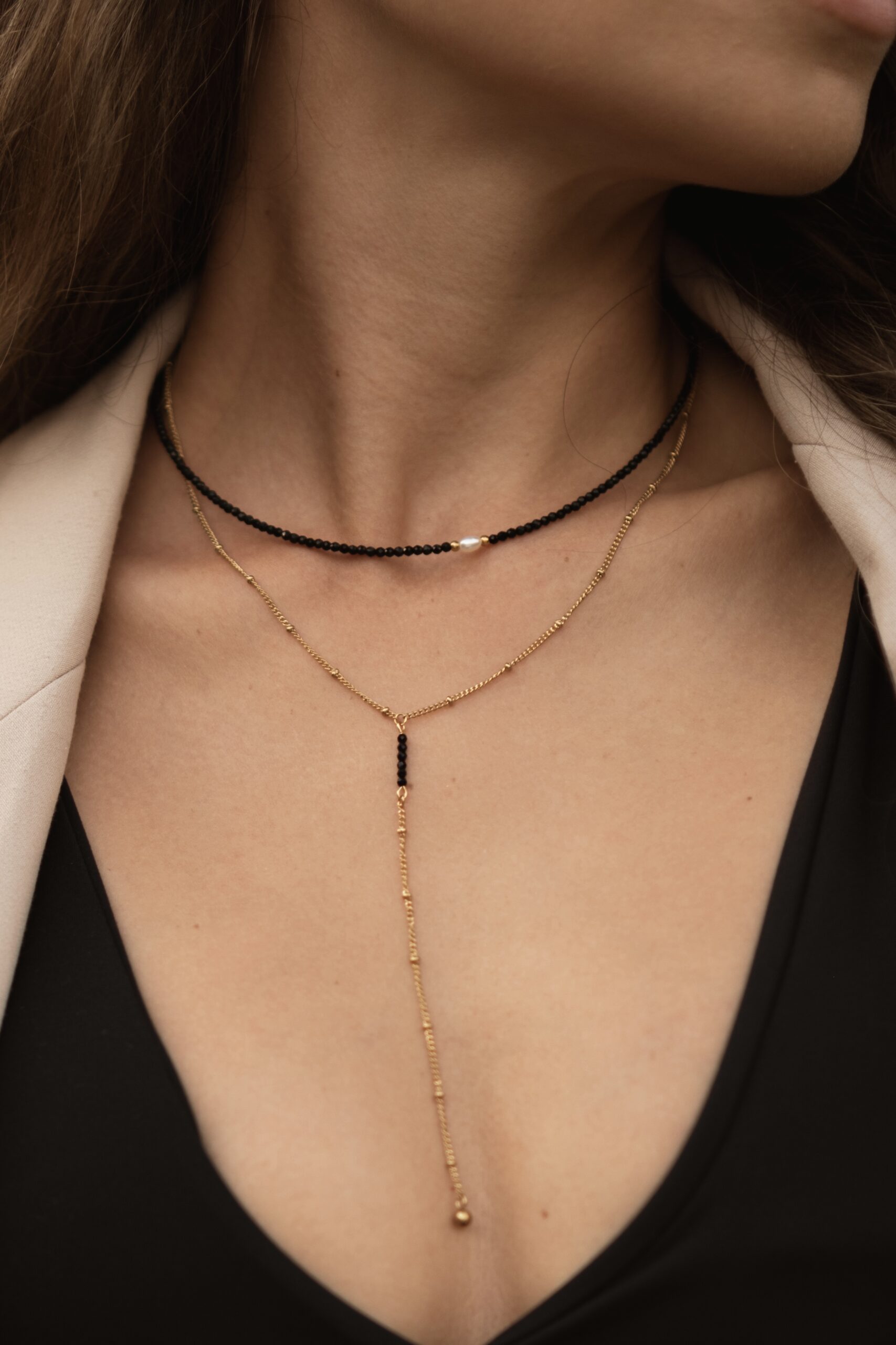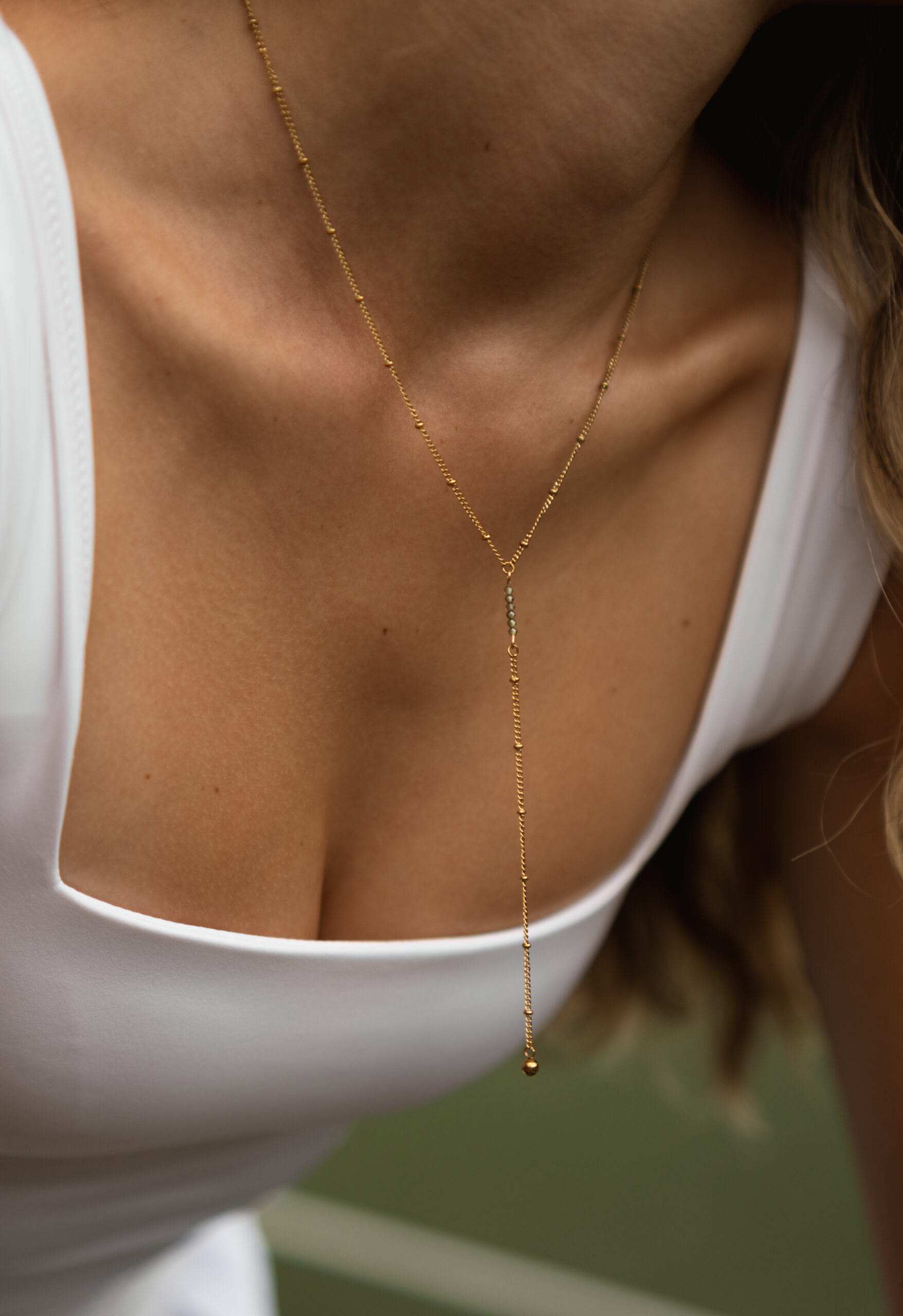 Minimalistický náhrdelník Y tvaru doplnený o vašu obľúbenú farbu zirkónov.