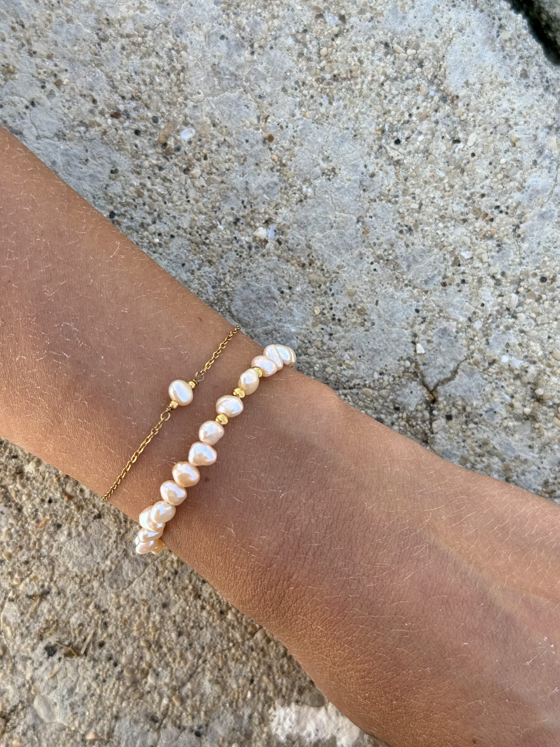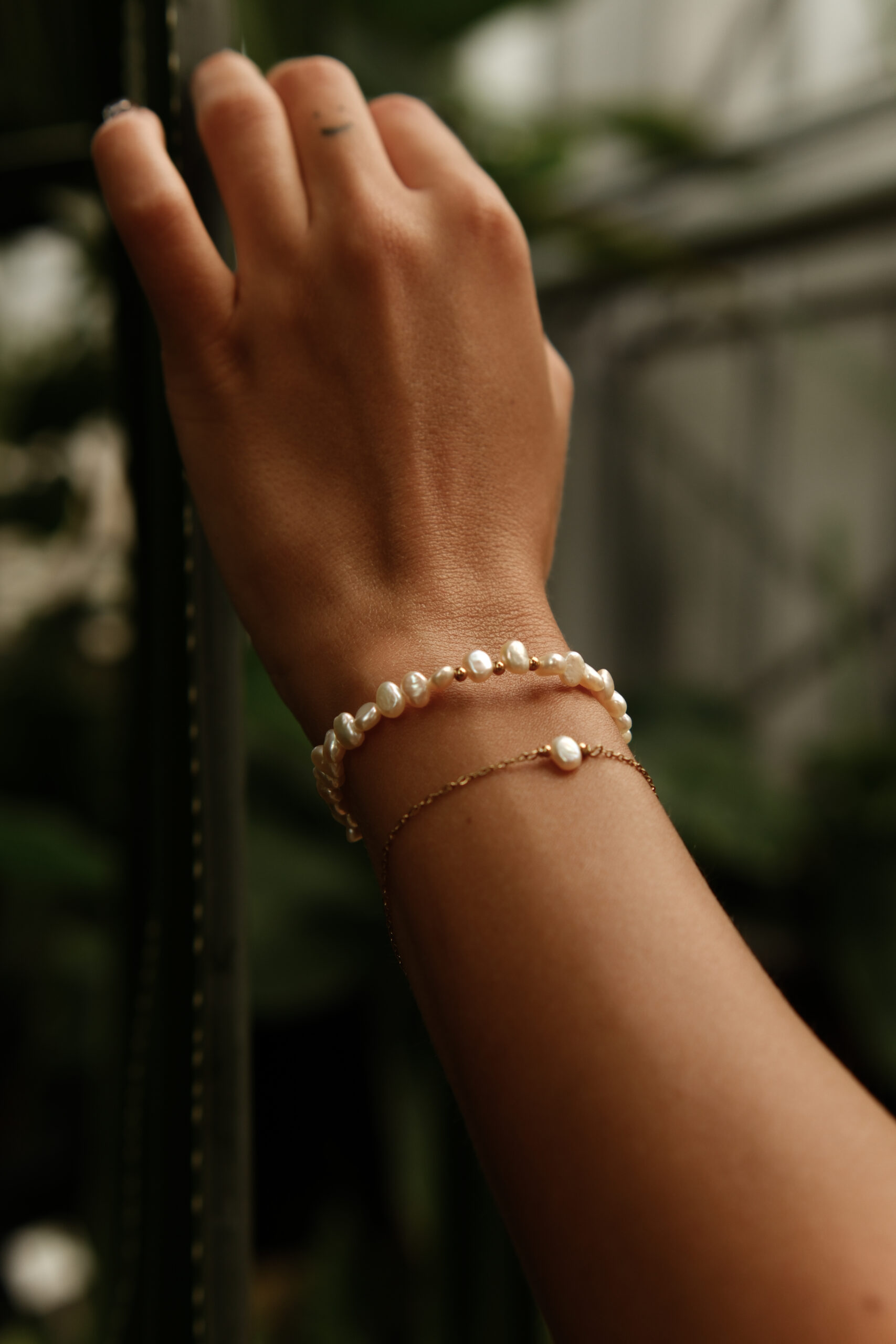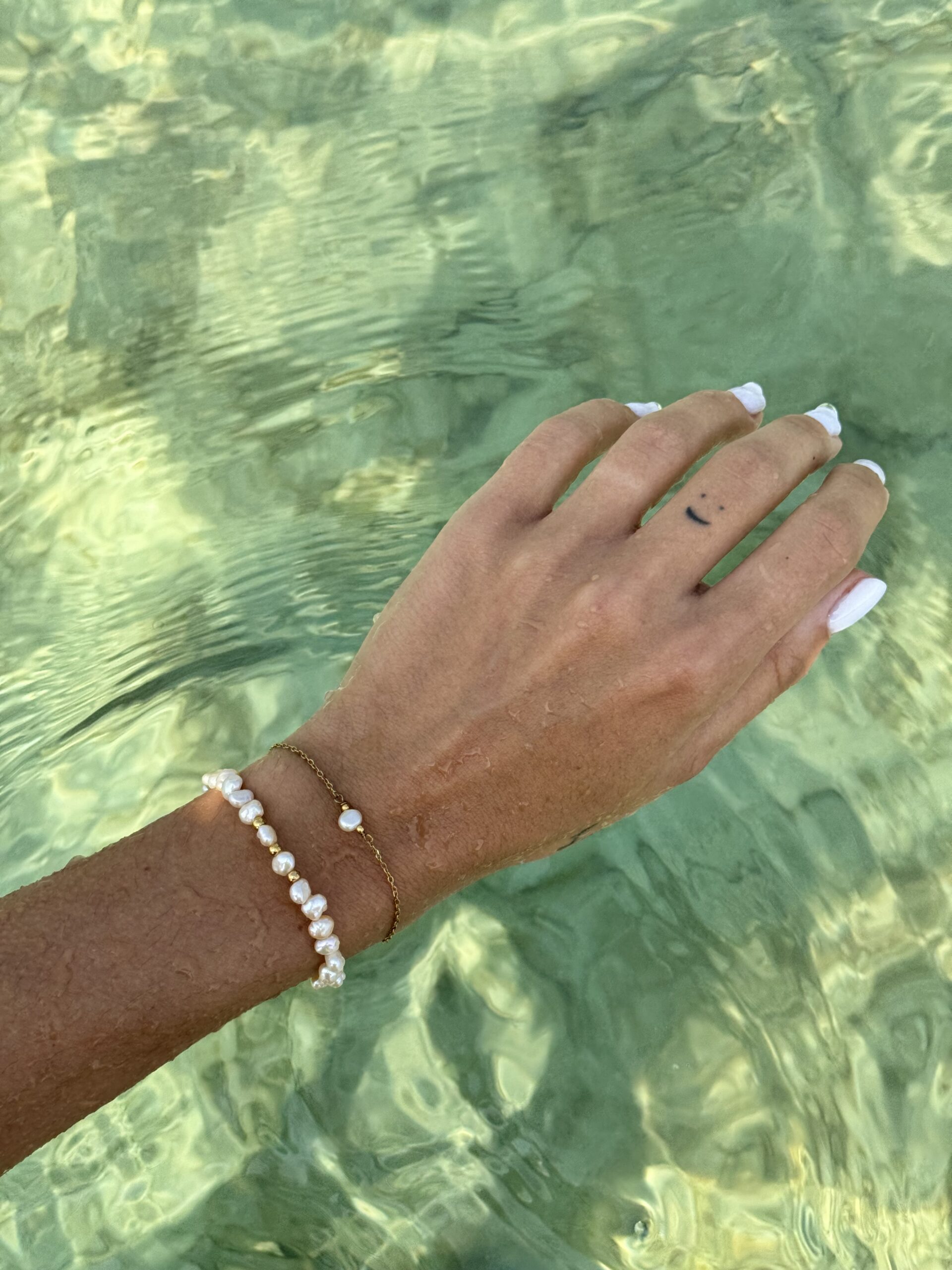 Z týchto perál sme vytvorili limitovanú kolekciu: náhrdelník a dva náramky, ktoré sú ako tri kapitoly jedného príbehu.