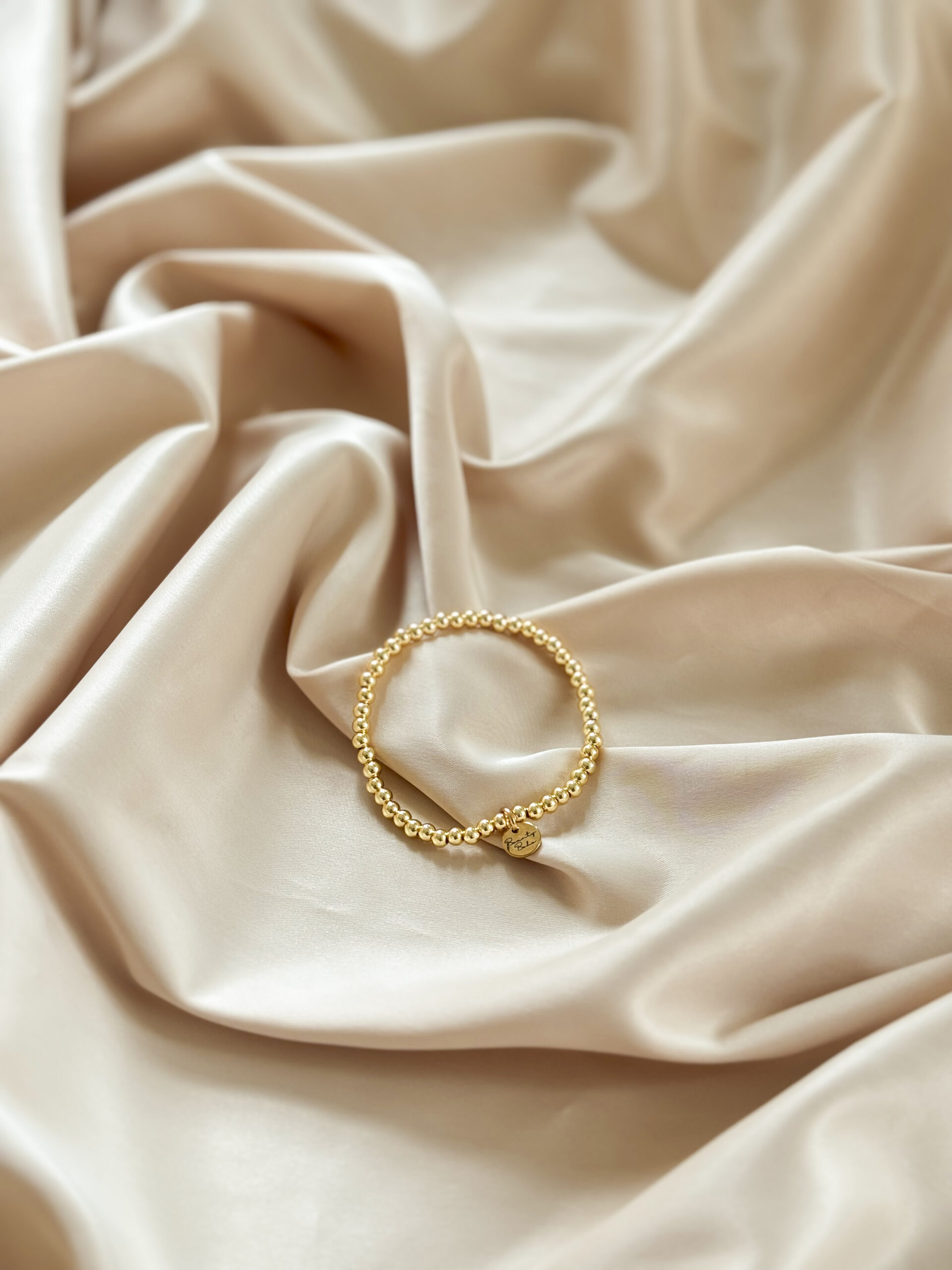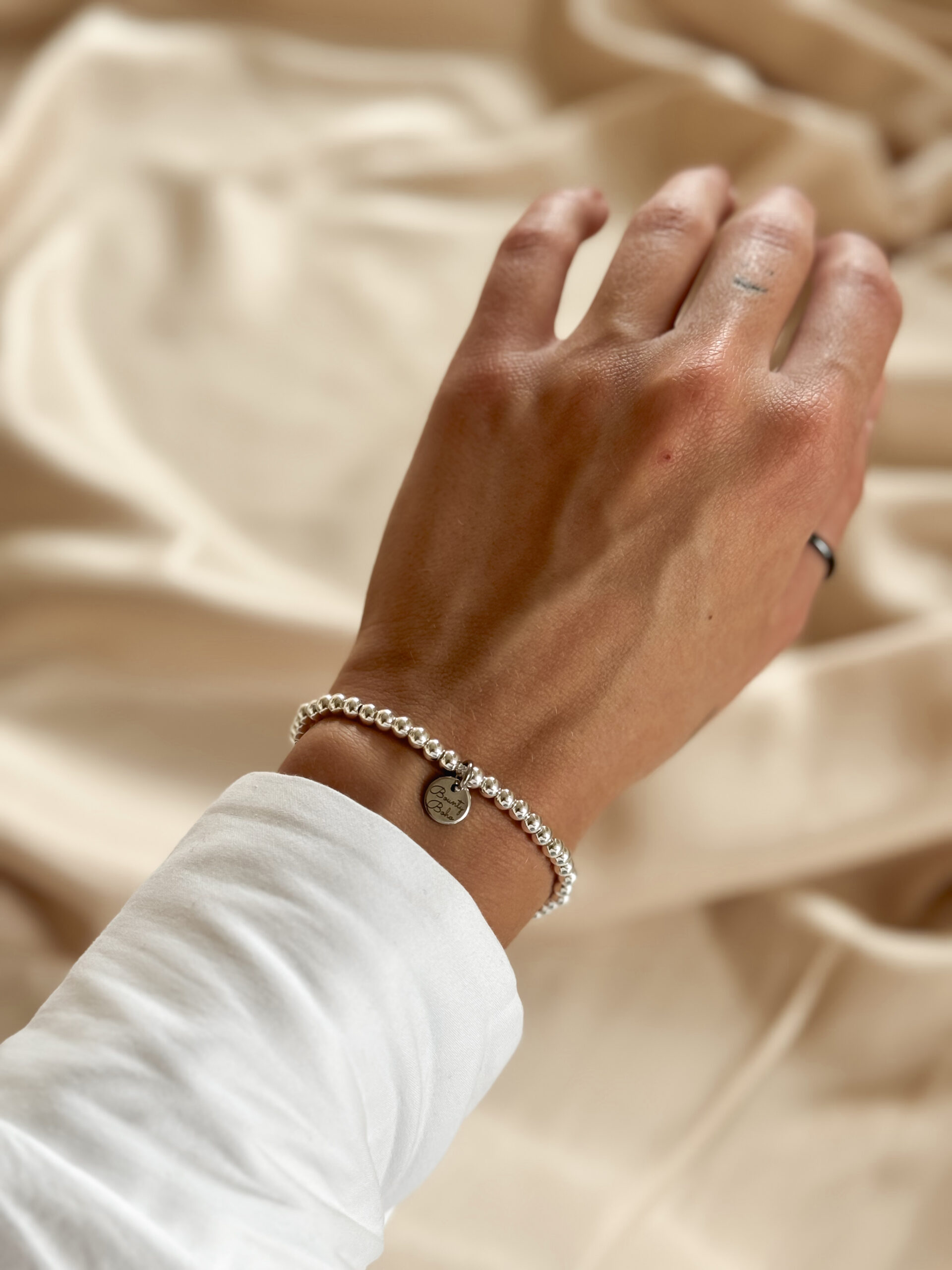 Minimalistický guličkový náramok na ruku na gumičke s logom Bounty Boho.