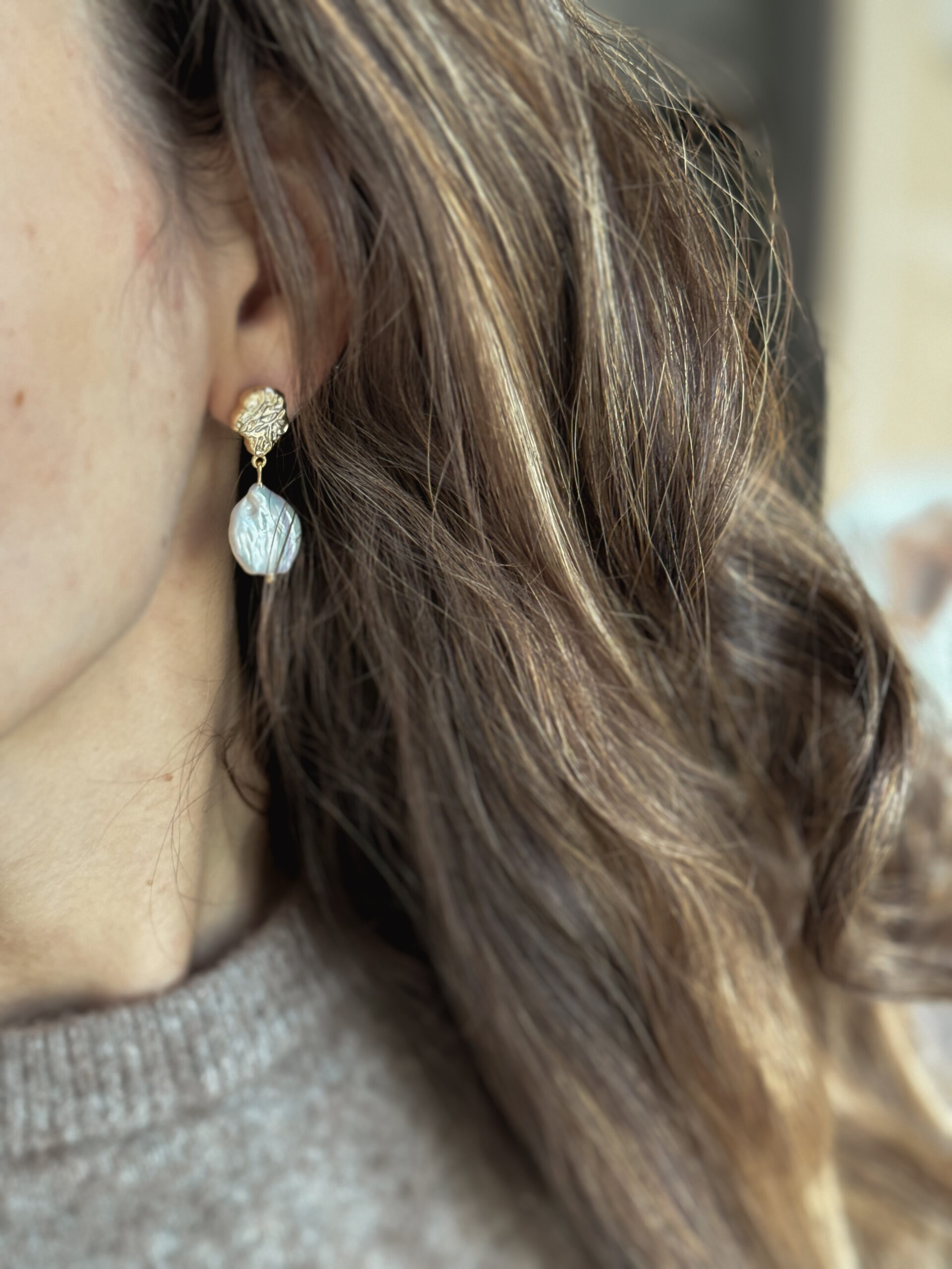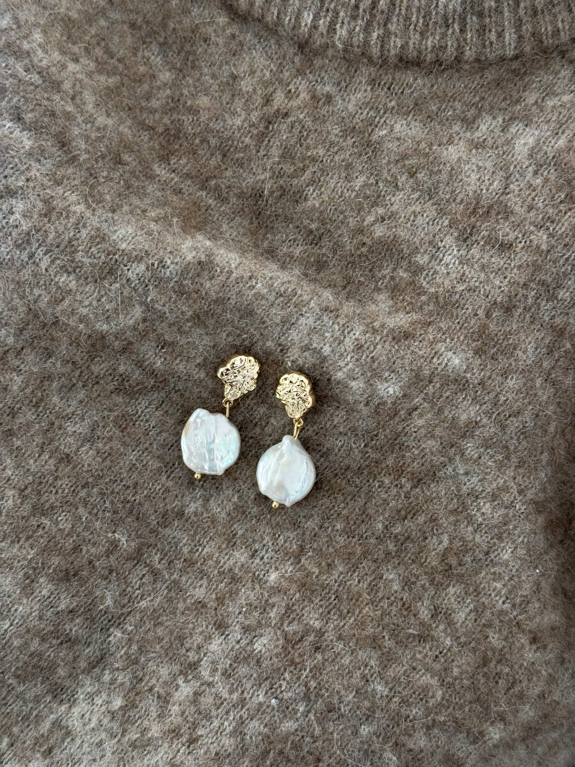 Visiace dámske náušničky s riečnymi perlami. Dostupné v zlatom aj striebornom prevedení.