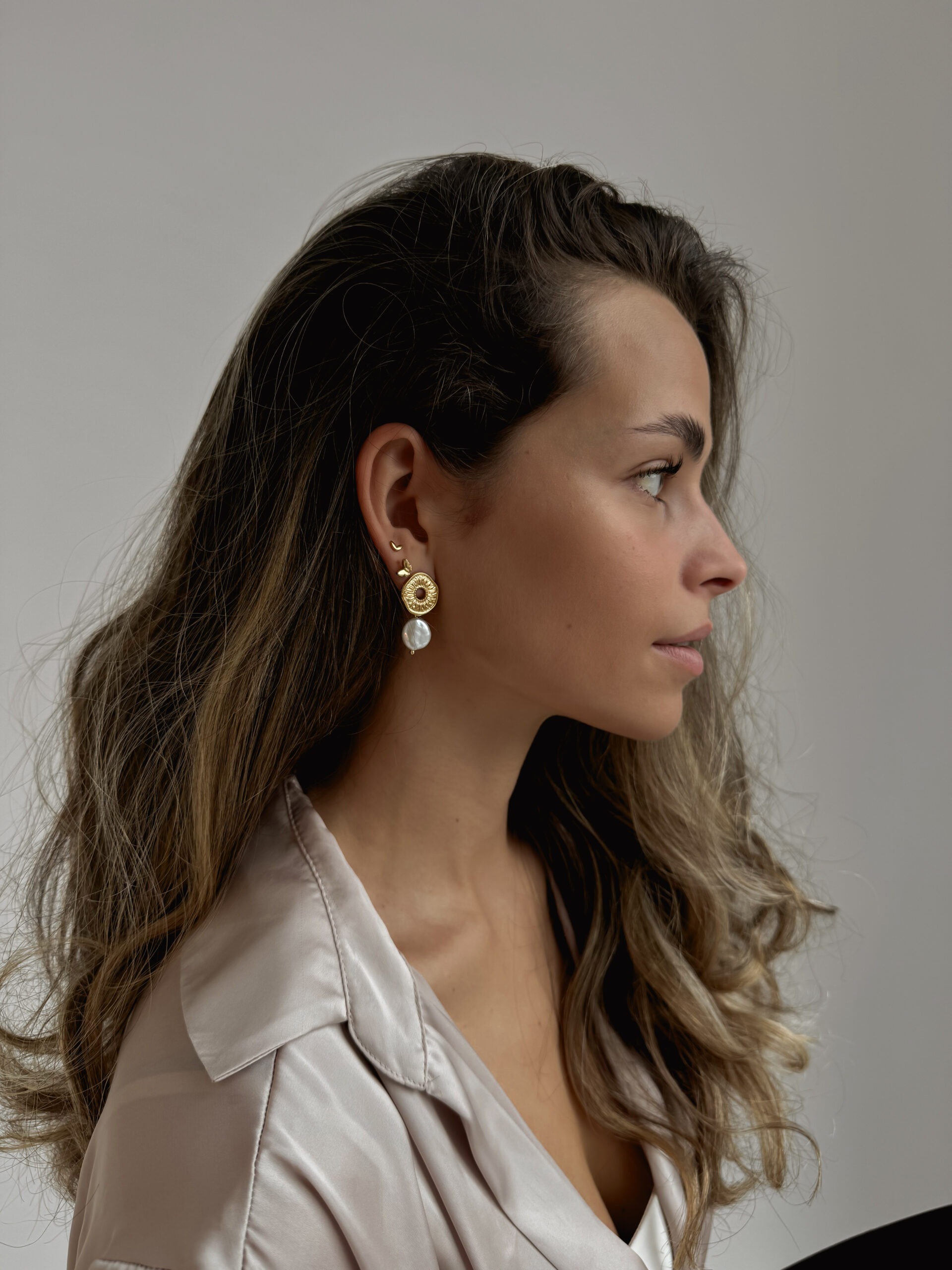 Visiace náušničky s riečnymi perlami. Dostupné v zlatom aj striebornom prevedení.