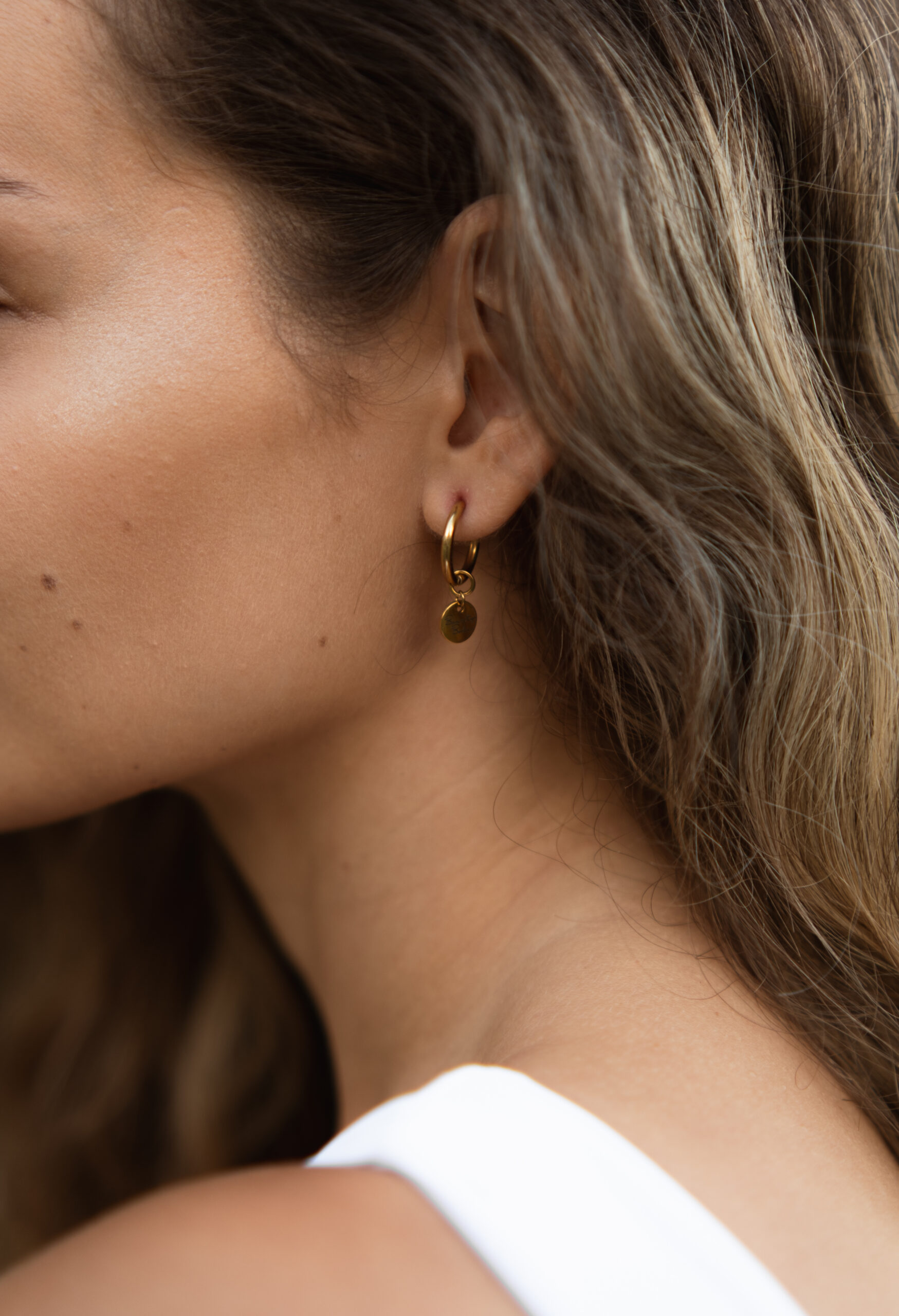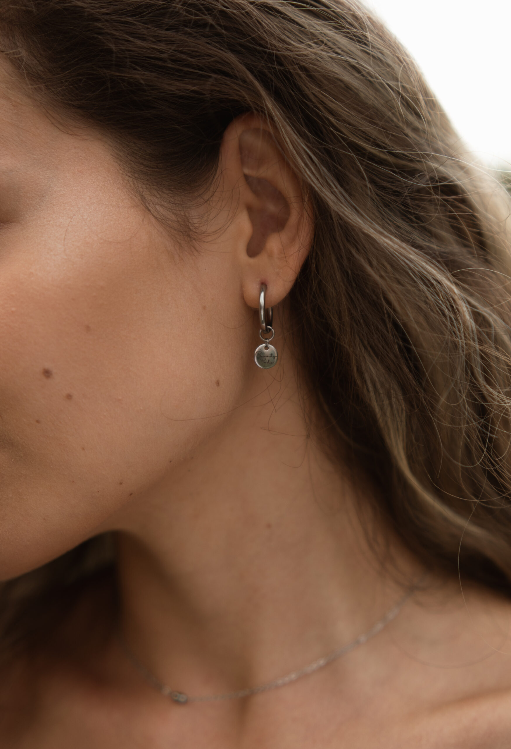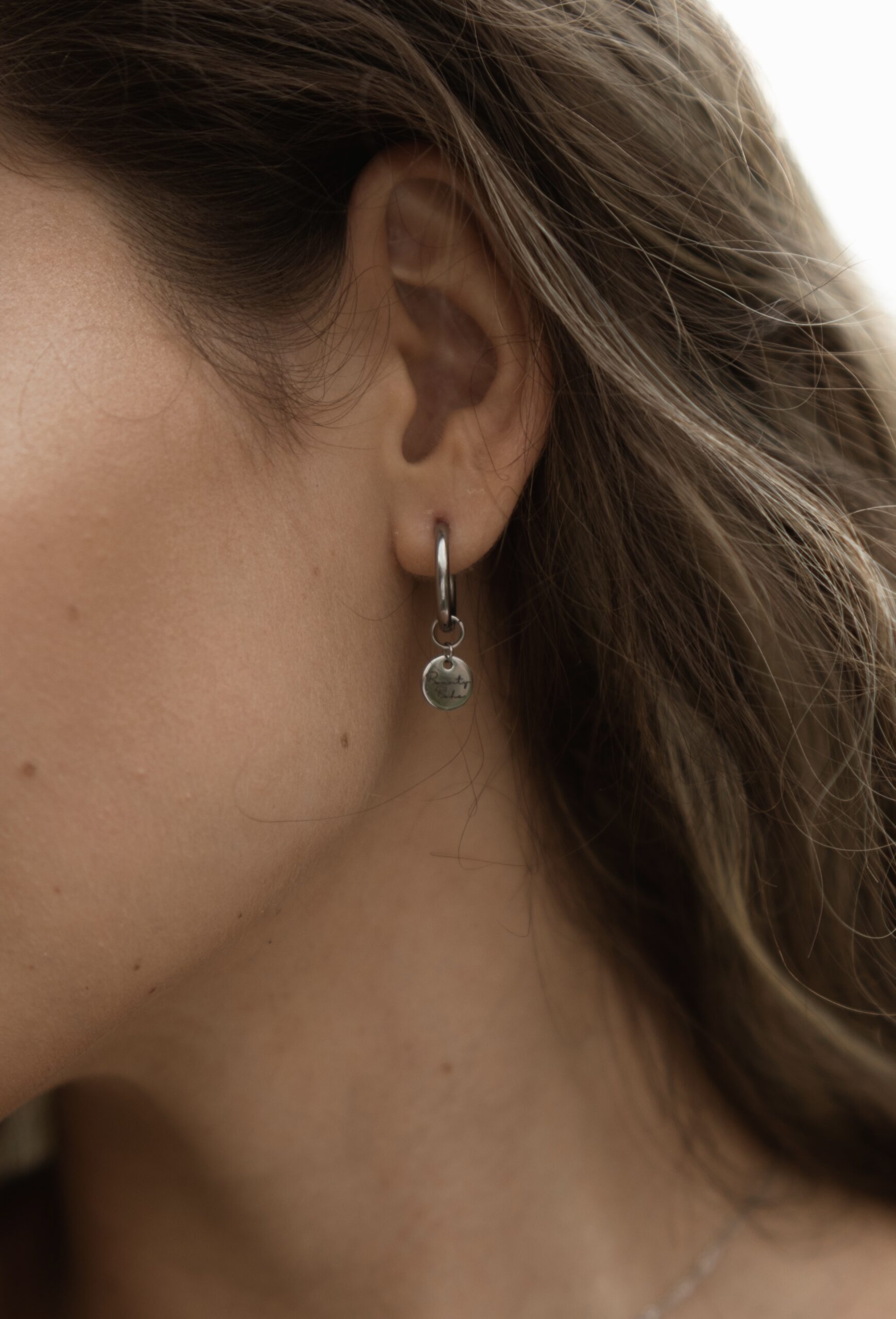 Minimalistické náušnice z chirurgickej ocele, doplnené o medajlnónik s logom Bounty Boho.