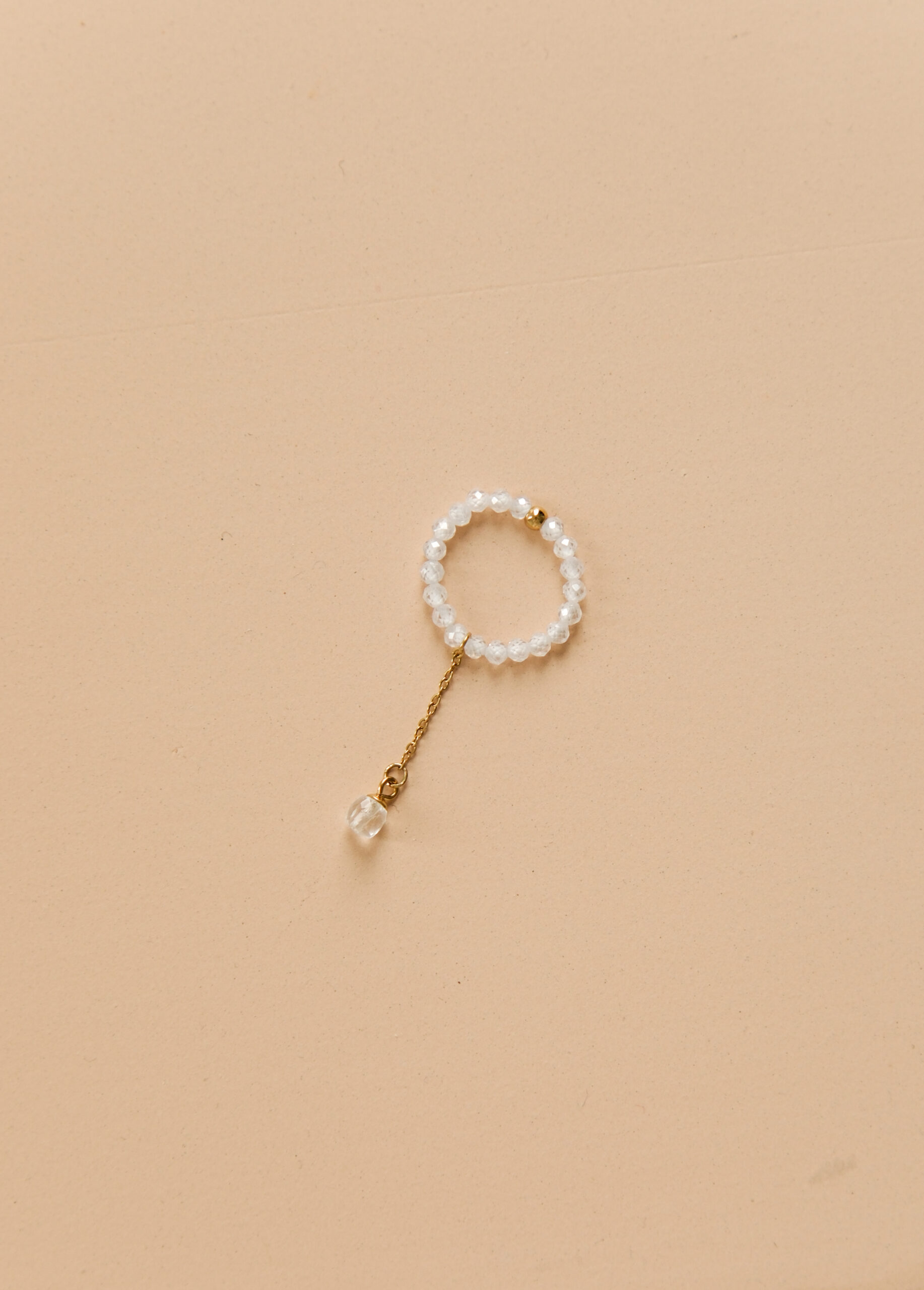Minimalistický prstienok z bieleho zirkónu s príveskom z krištáľu, s ktorým zaujmete hneď na prvý pohľad.